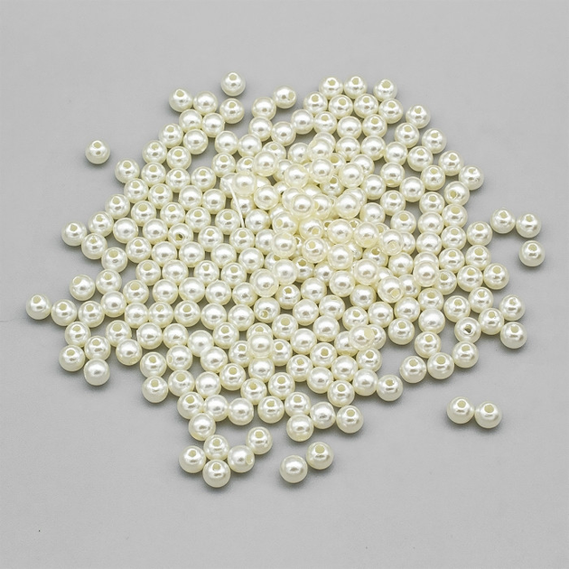 Перли Намистини Акрилові, Глянцеві, Круглі, Слонова Кістка, 6мм, Отвір 1.5мм, близько 210шт/25г