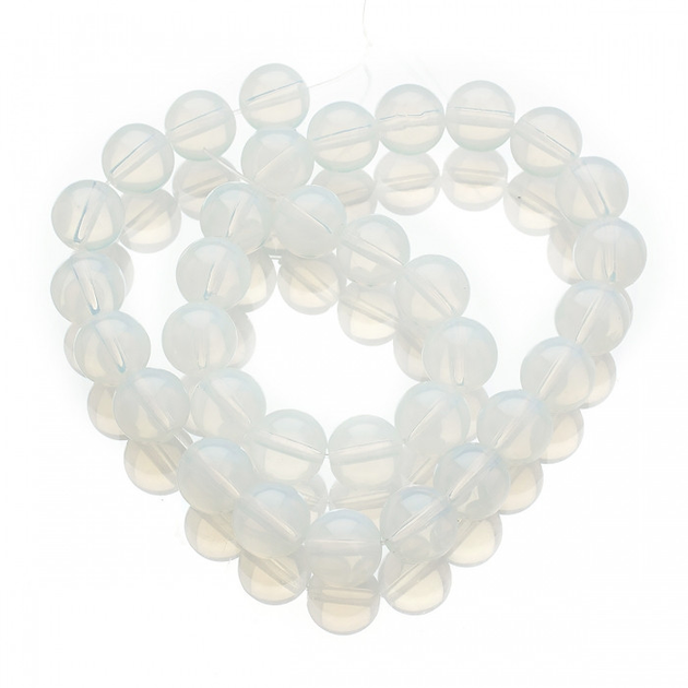 Намистини Синтетичний Опаліт класу АА, на Нитках, Круглі, Білий, 10мм, Отвір 1мм, близько 31шт/29смнитка