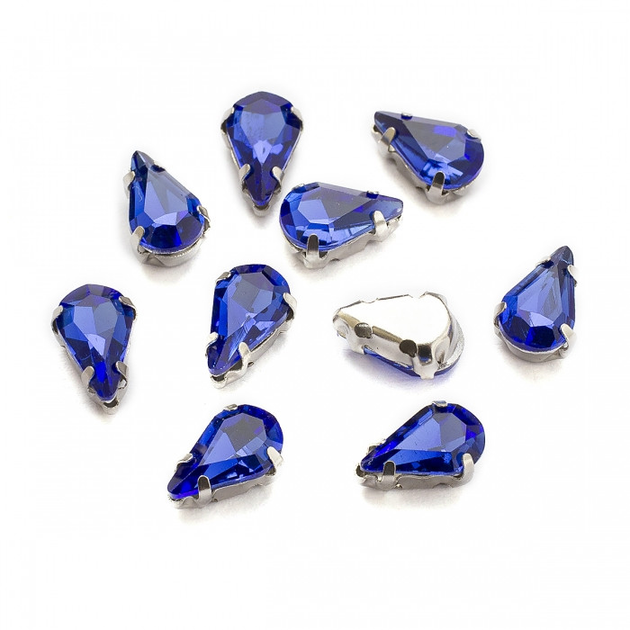 Пришивні Стрази Скляні, Основа Латунь, Крапля, Королівський синій, 8х5.5х4мм, Отвір 0.8-1мм, 10 шт