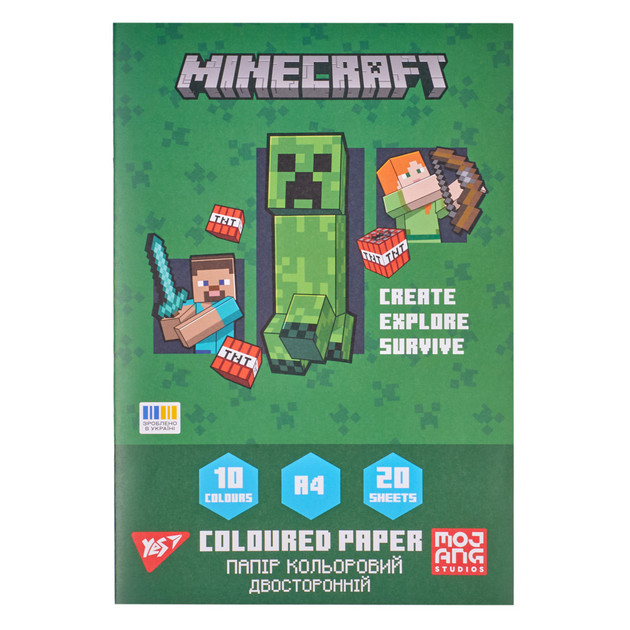 Папір кольоровий двосторонній А4 YES Minecraft Spring 955462 20 аркушів 5088640