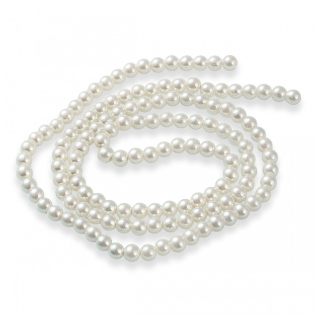 Перли Намистини Скляні Круглі Глянцеві, Слонова Кістка, 6-7мм, Отвір 1мм, близько 130шт/70см/нитка