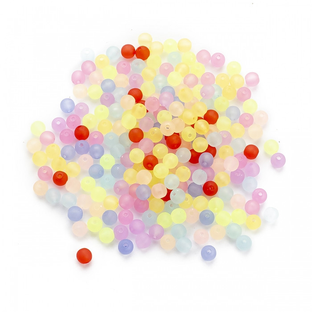 Намистини Акрил Матові, Прозорі, Круглі, Матові, Мікс, 6мм, Отвір 1мм, близько 200шт/25г