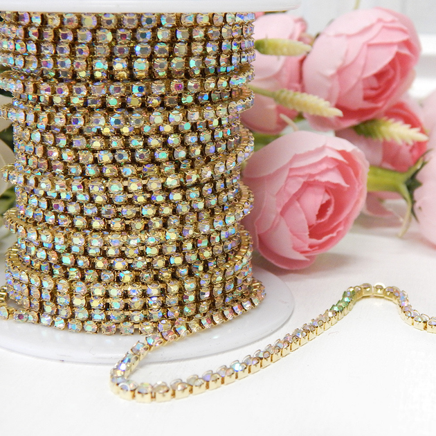 Стразовий ланцюг SS8, основа-золото, 2,4 мм, хамелеон АВ, 50 см