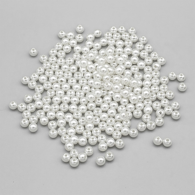 Перли Намистини Акрилові, Глянцеві, Круглі, Білий, 6мм, Отвір 1.5мм, близько 210шт/25г