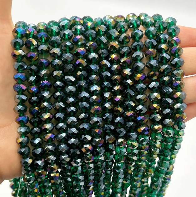 Намистини кришталеві "ронделі" 8х6 мм, смарагдовий прозорий з АВ (65-70 шт)