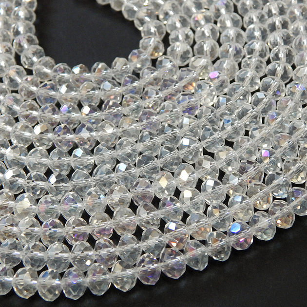 Намистини кришталеві рондель 8х6 мм прозорі з АБ напиленням (~65 шт)