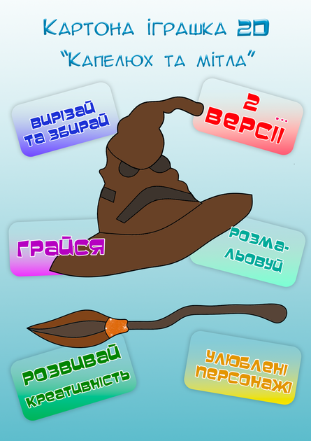 Набір для творчості та рукоділля для дітей за Гаррі Поттером «Капелюх та мітла» аплікація та розмальовка, поробка зроби сам