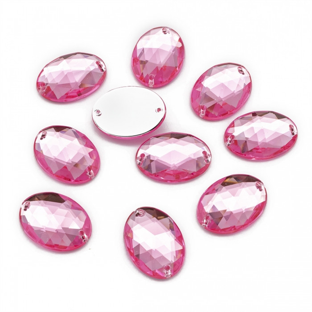 Пришивні Акрилові Стрази, 2 отвори, Овальні, Фламінго, 18х13х5мм, Отвір 1мм, 10 шт