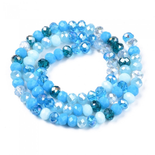 Намистини Гальваніка Скло, Грановані, Рондель, Темно-синій, 5.5-6х5мм, Отвір 1мм, близько 88шт/40см/нитка
