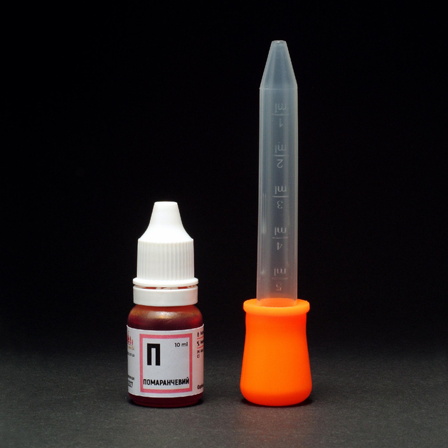 Набір помаранчевий фарбник та помаранчева піпетка для дитячих ігор та дослідів
