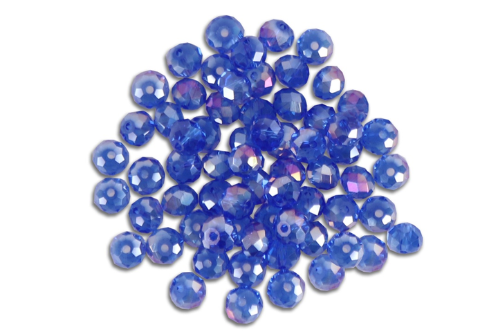 Намистини кришталеві Рондель AB, 8 мм, нитка 60 шт, C64 середній синій, намистини для прикрас, камінчики для вишивки, намист