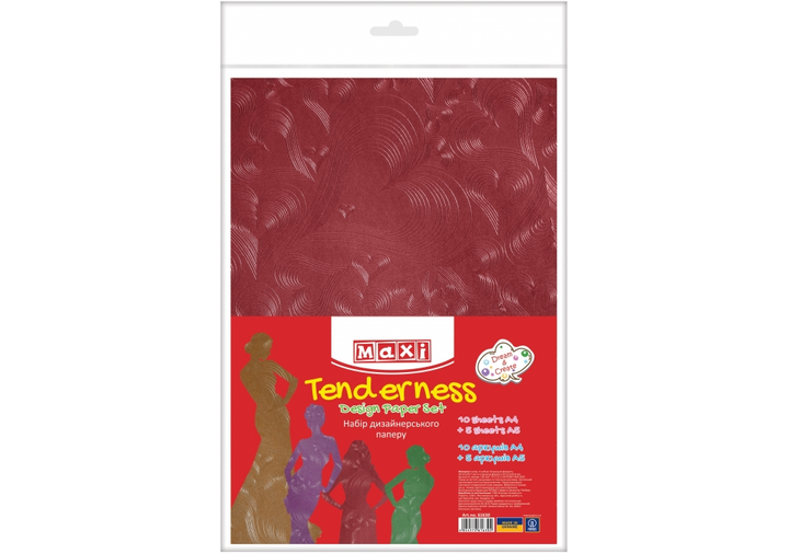 Набір дизайнерського паперу "Ніжність" А4(21x29,7 см), 120г/м2, 10арк, односторонній+5 арк А5 (21х14