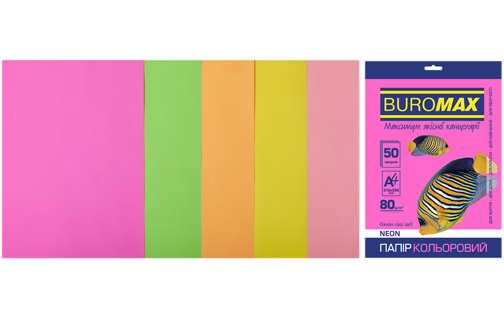 Папір кольоровий Buromax Neon А4 80гр 50 аркушів 5 кольорів (BM.2721550-99)