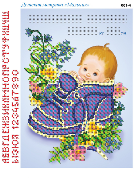 Схема для вишивання бісером Магія бісеру 001-4 Метрика для хлопчика Розмір 18 * 24 см