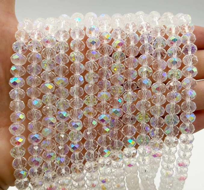 Намистини кришталеві Рондель 6х4 мм прозорий з АВ+ (уп.90 шт)
