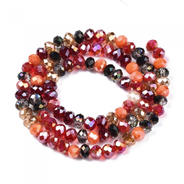 Намистини Гальваніка Скло, Грановані, Рондель, Червоний, 5.5-6х5мм, Отвір 1мм, близько 88шт/40см/нитка