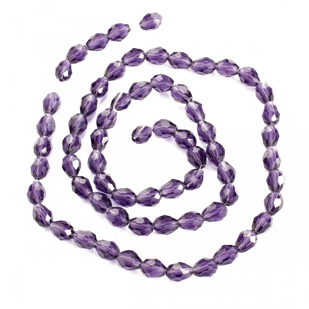 Намистини Скло Крапля, Прозорі, Грановані, Пурпурний, 8х6мм, Отвір 1мм, близько 62шт/43.5см/нитка