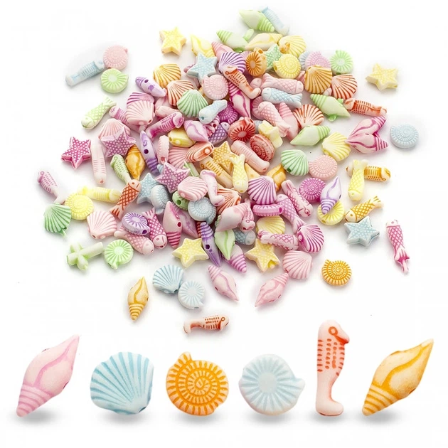 Намистини Акрил Морська Тема, Крафт Стиль, Мікс, 10~15x6~11x4~5мм, Отвір 2мм, близько 130шт/50г