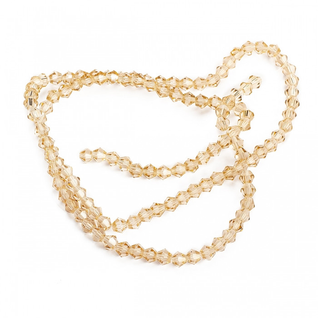 Намистини Австрійський Кришталь Клас АА, Біконус, Гальваніка АВ-колір, Персиковий, 3х3мм, 115шт/36см/нитка
