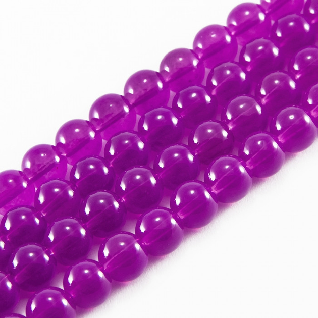 Намистини Скляні Імітація Нефриту, Форма: Кругла, Темно-бузковий DK117, 8мм, 101шт/81см/нитка