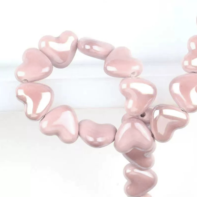 Намистини Серце керамічні горизонт. отвір 15х13 мм 5 шт. Рожевий опал (КБ1315с23)