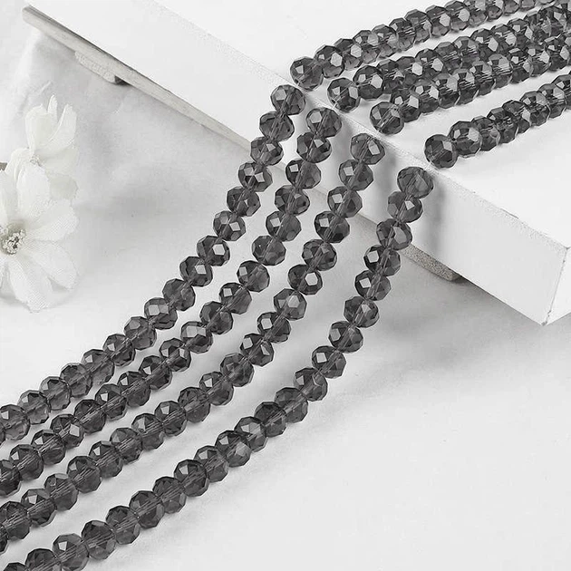 Намистини кришталеві "ронделі" 8х6 мм, прозорий чорний, 65-70 шт