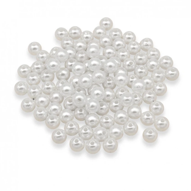 Перли Намистини Пластикові ABS, Білий, 8мм, Отвір 2мм, близько 95шт/25г