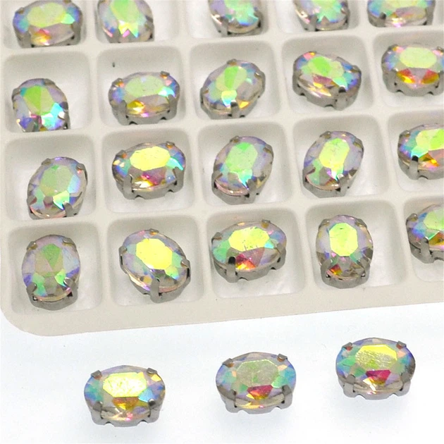 Стрази в оправі пришивні Овал 8х10 мм 10 шт. АВ (СЦ0810о50)