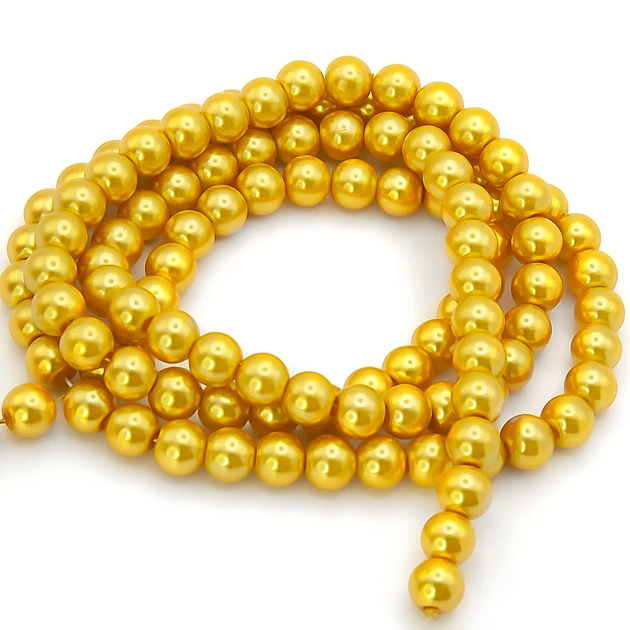 Намистини скляні на нитці під перли 8 мм 80 см (+-105 шт.) Жовтий (БЖ0008ш56)