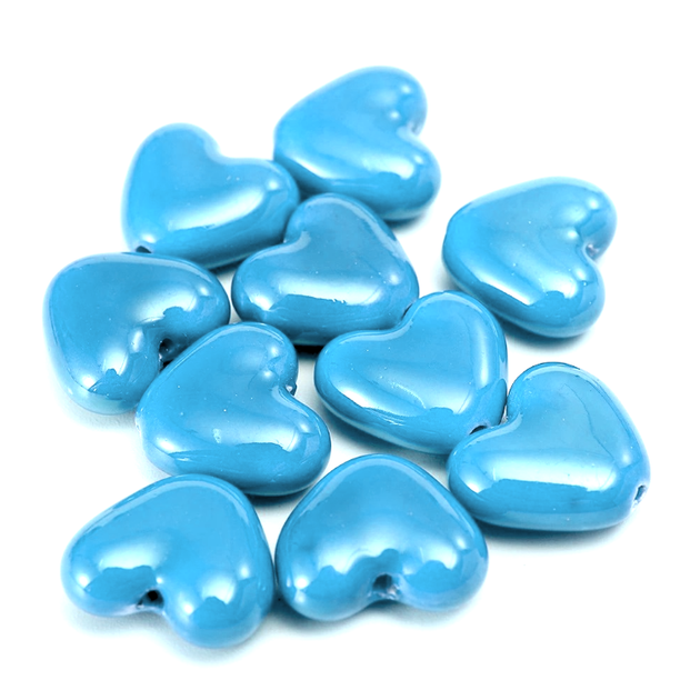Намистини Серце керамічні горизонт. отвір 15х13 мм 5 шт. Блакитний (КБ1315с21)