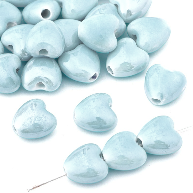 Намистини Серце керамічні вертик. отвір 12х12,5 мм 5 шт. Небесний (КБ1212с32)