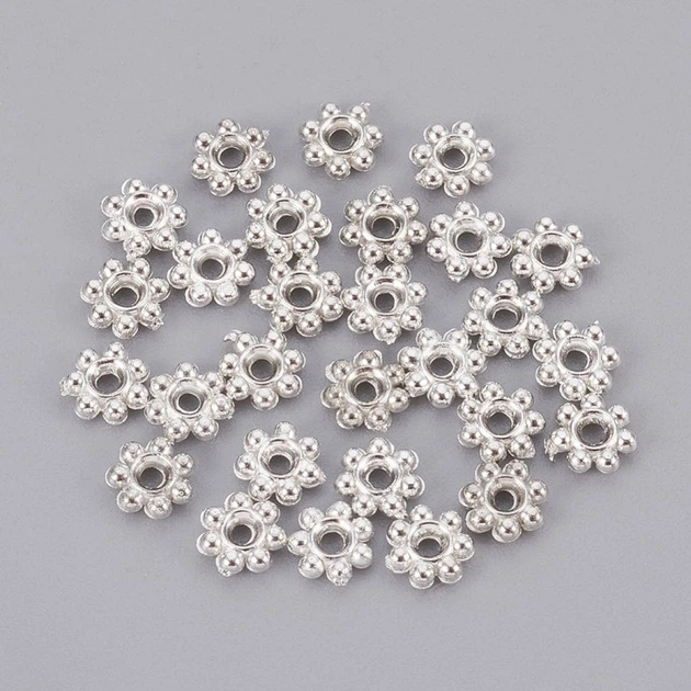 Намистини-Роздільники Пластикові ССВ, Квітка, Срібло, 4х1мм, Отвір 1мм, 100 шт
