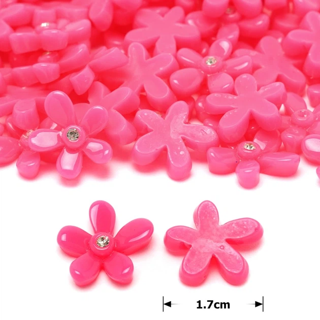 Набір пластикових квіток кабошонів 1.7см 10шт рожевий (27336)