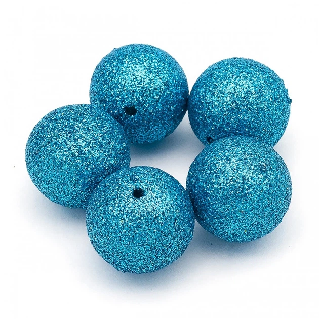 Намистини Акрилові Круглі з Глітером, Блакитний, 19.5x20мм, Отвір: 2мм, 5 шт
