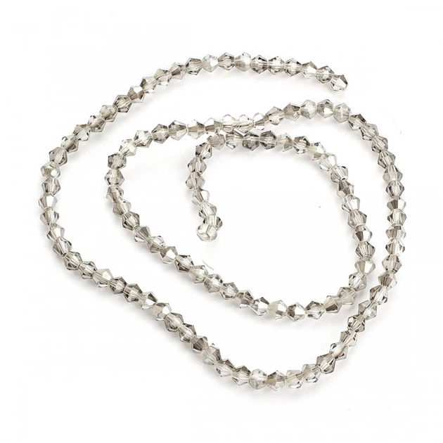 Намистини Австрійський Кришталь Клас АА, Біконус, Гальваніка, Світло-сірий, 3х3мм, бл.115шт/36см/нитка