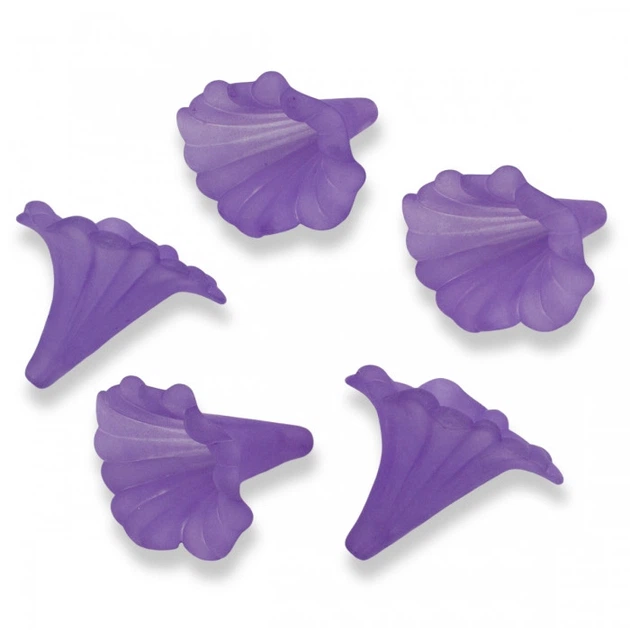 Намистини Акрил Матові, Прозорі, Квітка, Бузковий, 41x35x35мм, Отвір 3мм, 5 шт