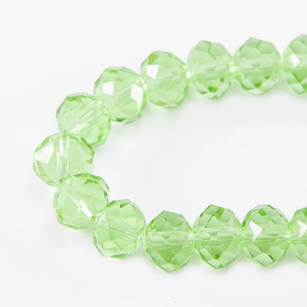 Намистини Австрійський Кришталь, Скло Грановані, Прозорі, Рондель, Зелений світлий, 8х6мм, 72шт/42см/нитка