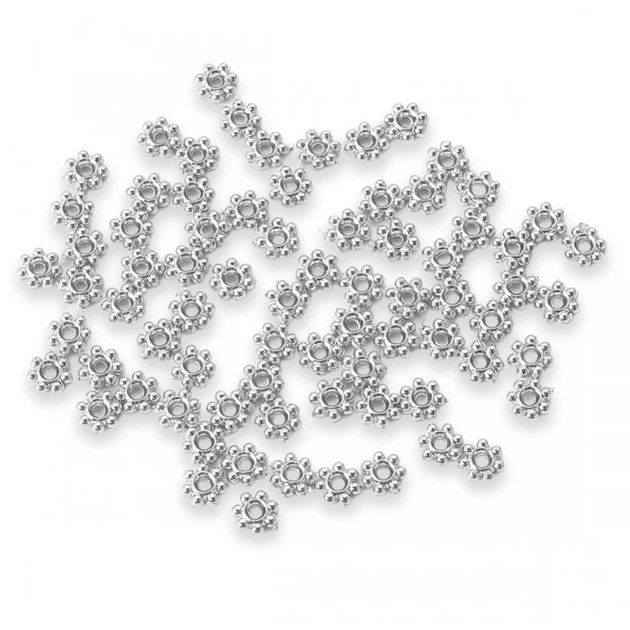 Намистини-Роздільники Пластикові ССВ, Квітка, Срібло, 4х1мм, Отвір 1мм, 100 шт