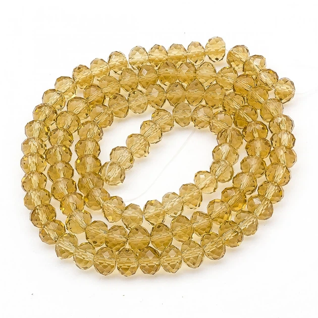 Намистини Австрійський Кришталь, Скло Грановані Прозорі, Рондель, Золотистий світлий, 6х4мм, 92шт/36см/нитка