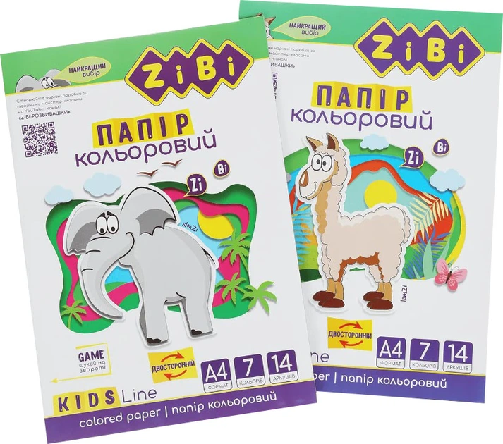 Набір кольорового паперу двостороннього ZiBi A4 14 аркушів 7 кольорів 90 г/м2 2 упаковки (ZB.1909.2)