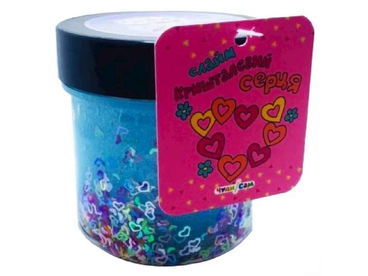 Слайм ЧУДИ САМ кришталевий "Серця" прозорий БЛАКИТНИЙ 125гр