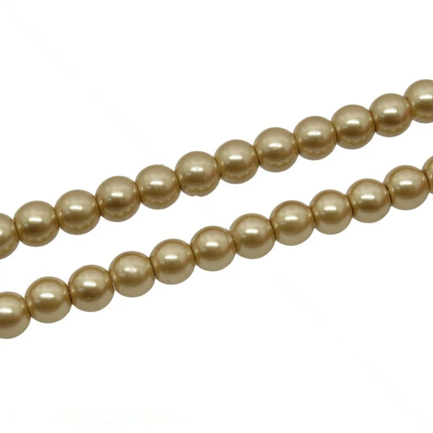 Скляна намистина Перли на нитці, 6 мм, Бежево-золотиста, Кругла, 1 низька (BUS-034124) Polimex