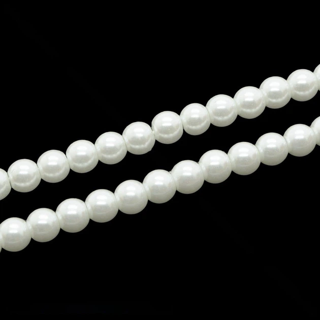 Скляна намистина Перли на нитці, 6 мм, Біла, Кругла, 1 низька (BUS-033786) Polimex