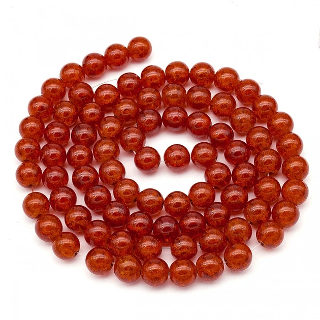 Намистини "Бите Скло" Круглі, Темно-помаранчевий, 10мм, Отвір 2мм, близько 80шт/80см/нитка