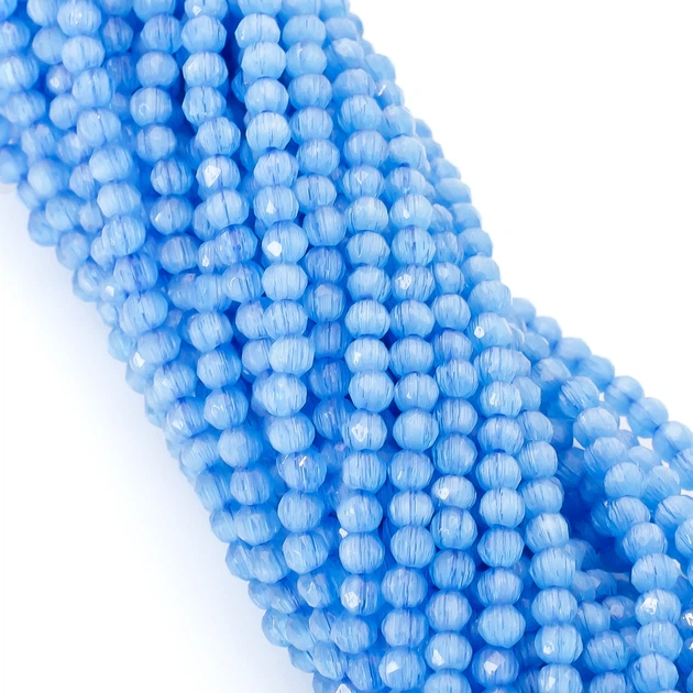 Намистини зі шпінелі на нитці 37 см кругле огранювання з ефектом котячого ока 2 мм 200 шт Блакитний (БШ0302к21)