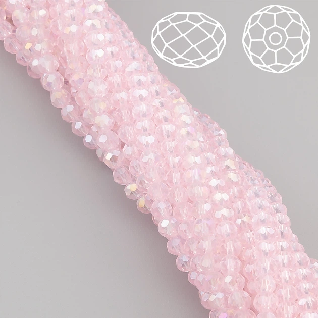 Намистини Swarovski огранювання рондель. розмір 4х3.5 мм 42 см (+-120 шт.) Рожевий світлий АВ прозорий (БС4095а59)