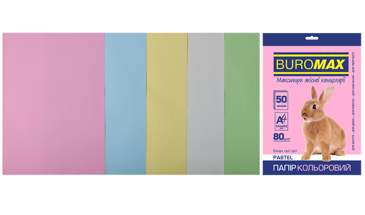 Папір кольоровий Buromax Pastel А4 80гр 50 аркушів 5 кольорів (BM.2721250-99)