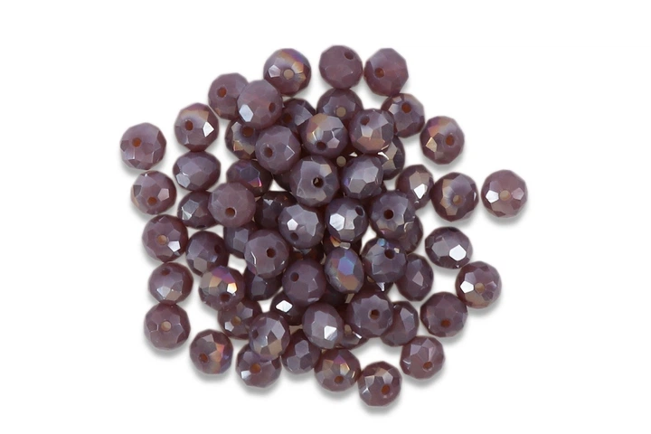 Намистини кришталеві Рондель AB, 8 мм, нитка 60 шт, C59 фіолетовий перламутр, намистини для прикрас, камінці для вишивки, на