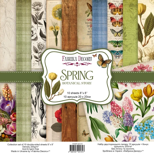 Набір паперу для скрапу Fabrika Decoru Spring botanical story 20х20см 10л