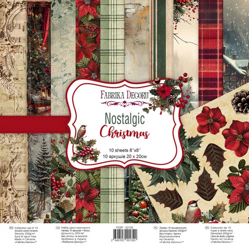Набір паперу для скрапу Fabrika Decoru Nostalgic Christmas 20х20см 10л